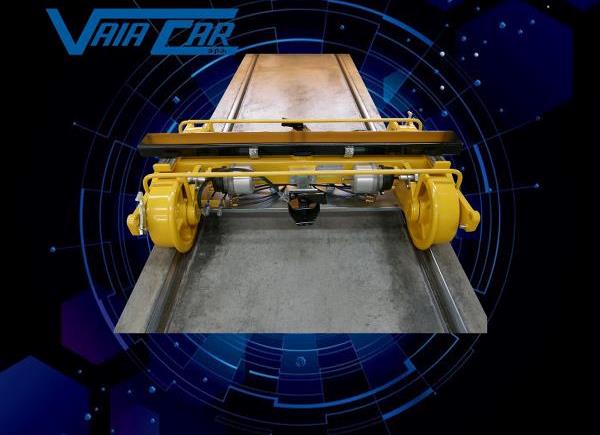 The movements of the load support derive from the inertia of the load during transfer. The total mass of the ETF-200 rail trolley is 850 kg (0.85 Ton). The trolley has a load capacity of 20,000 kg (20 Ton).